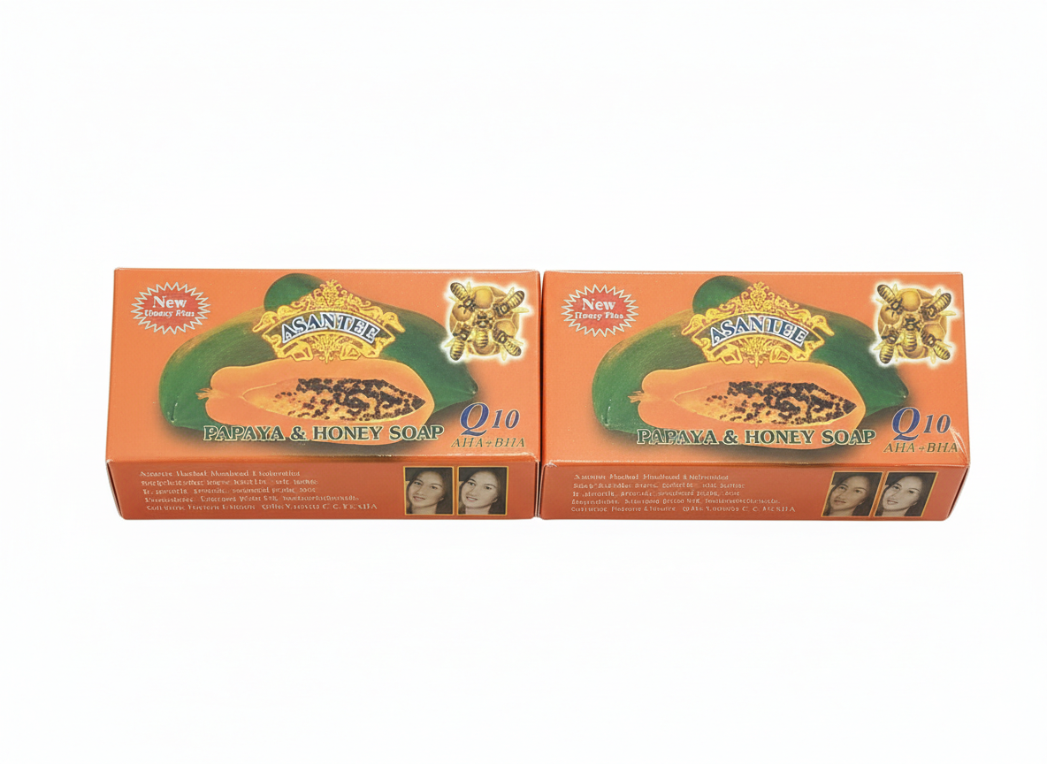 Asantee Papaya & Honey Soap combines papaya and honey to give the skin a gentle, caring wash. Papaya helps brighten the look of the skin, while honey helps keep it soft and smooth. The soap cleans away dirt and leaves the skin feeling fresh after every use. It is great for people who want a simple soap that feels kind to the skin. Use it daily for a clean, soft, and healthy-looking feel.
